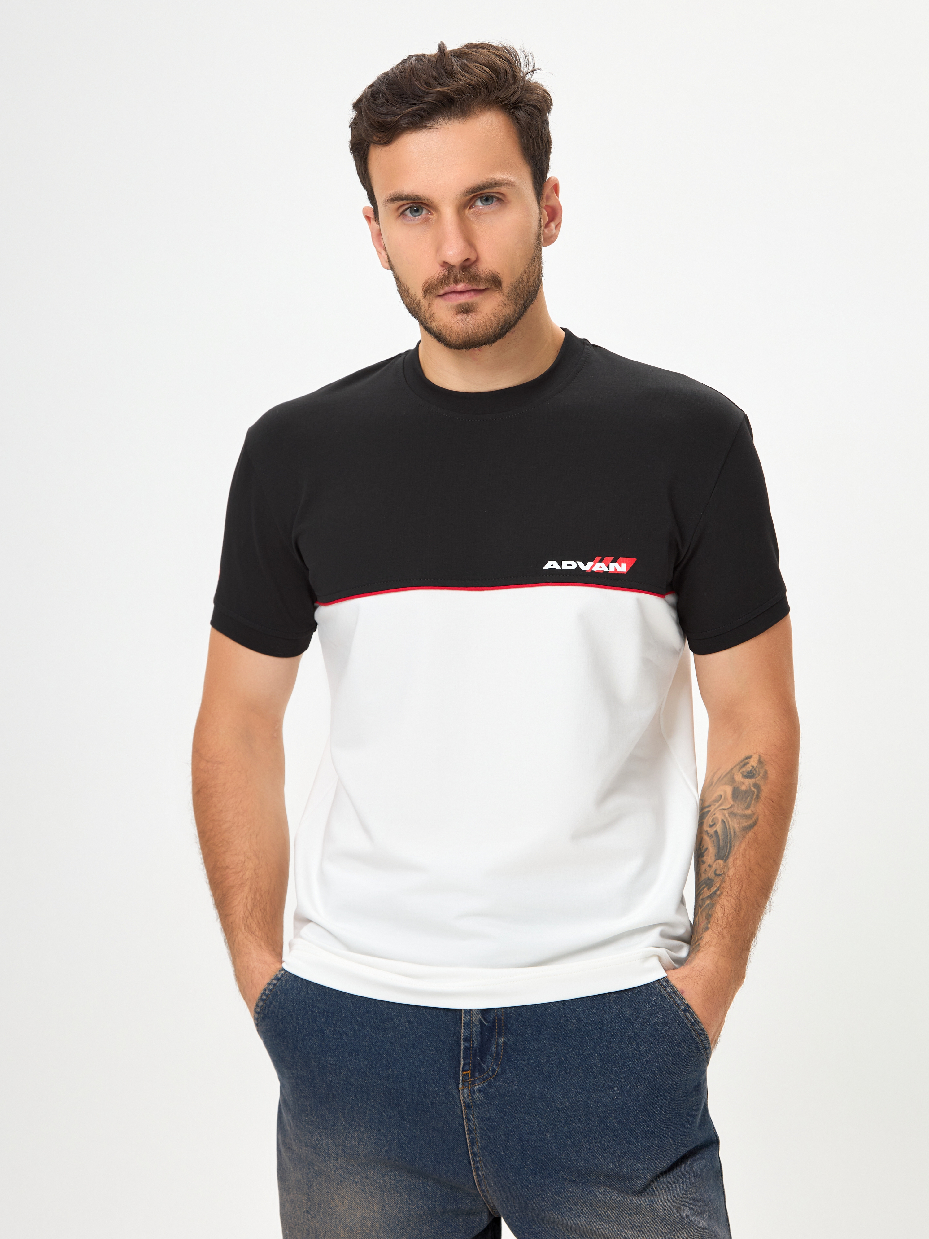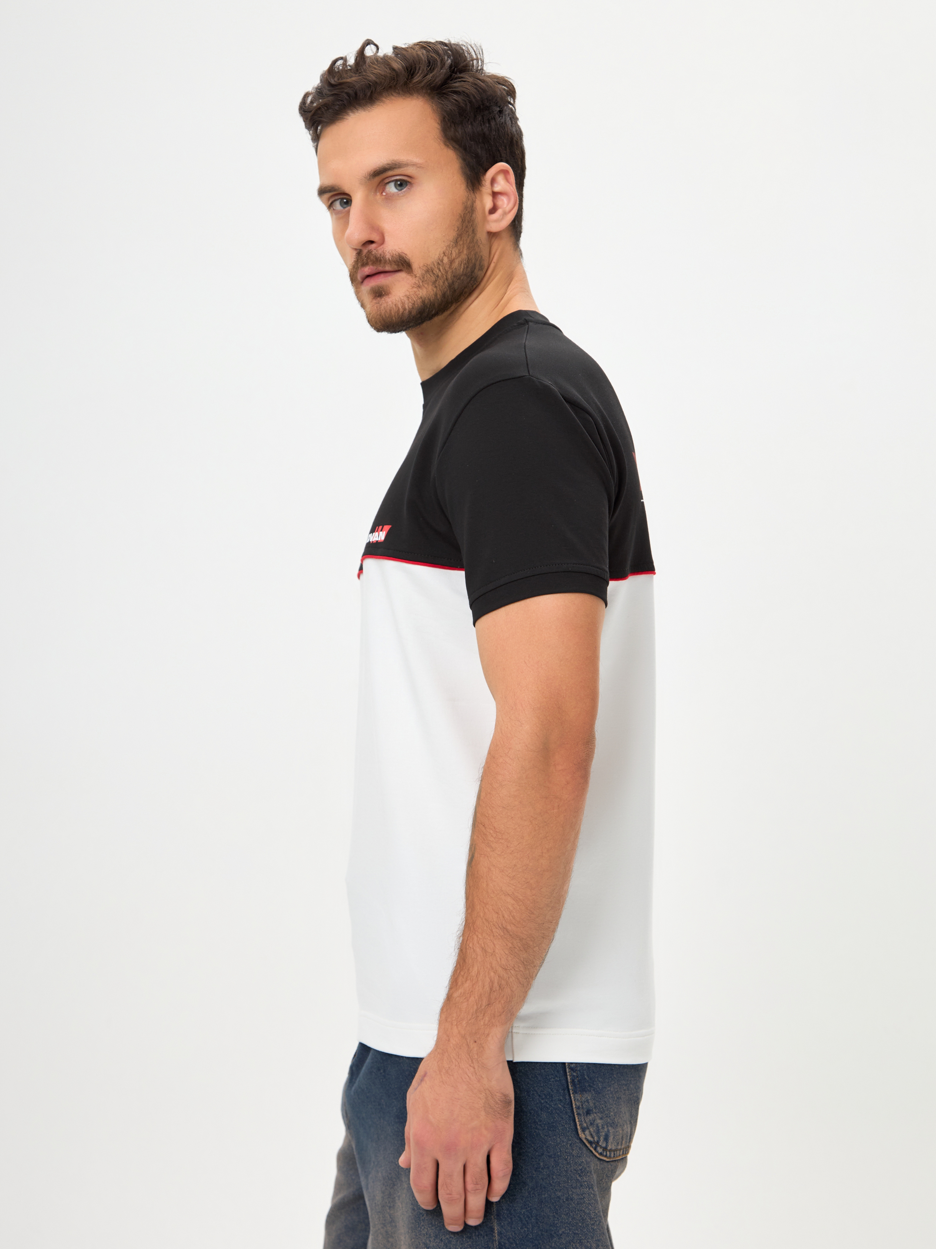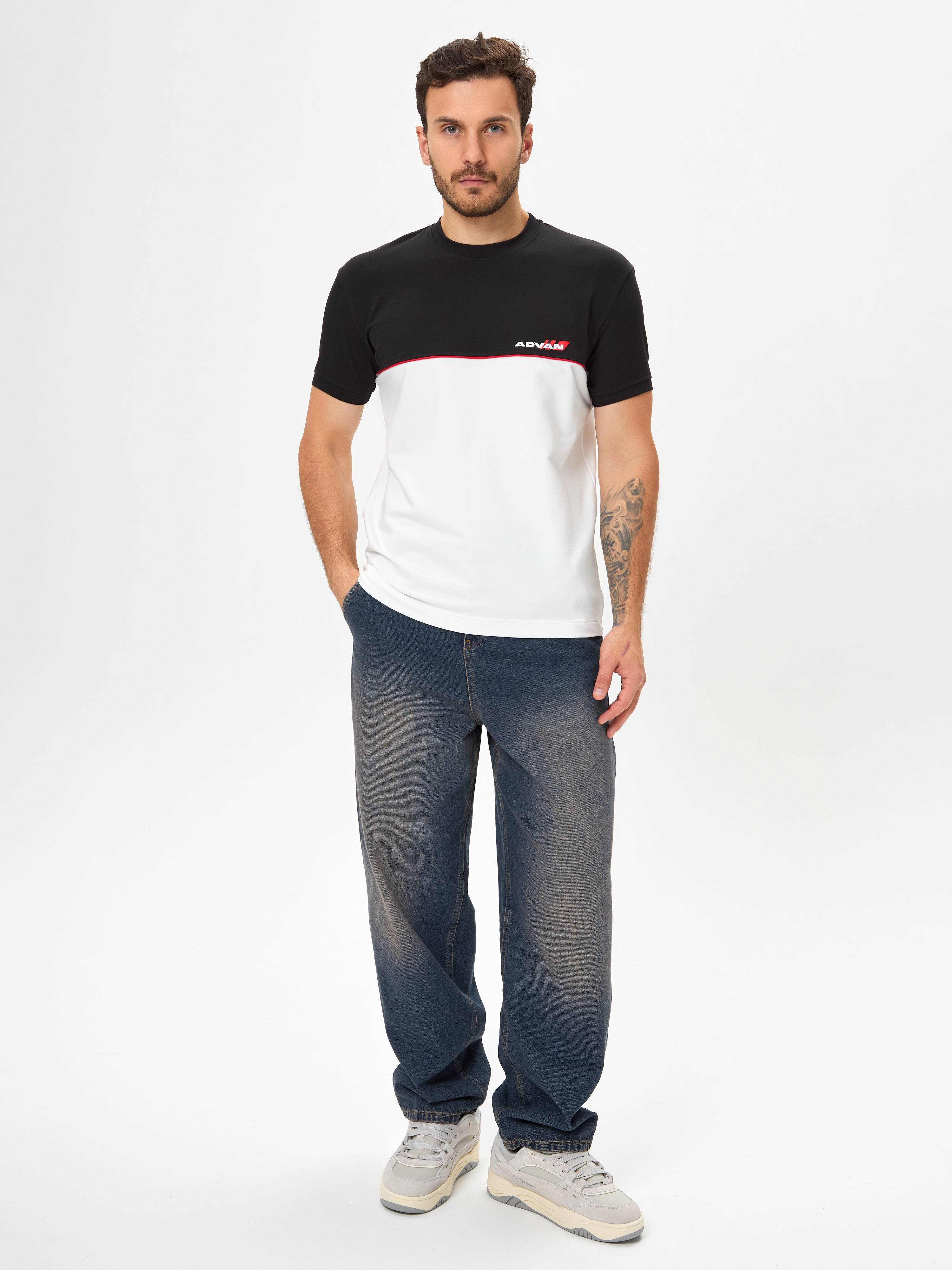 Футболка классического фасона свободного кроя с манжетами на рукавах и цветным кантом. Цветовые комбинации делают изделие элегантным и привлекательным.
