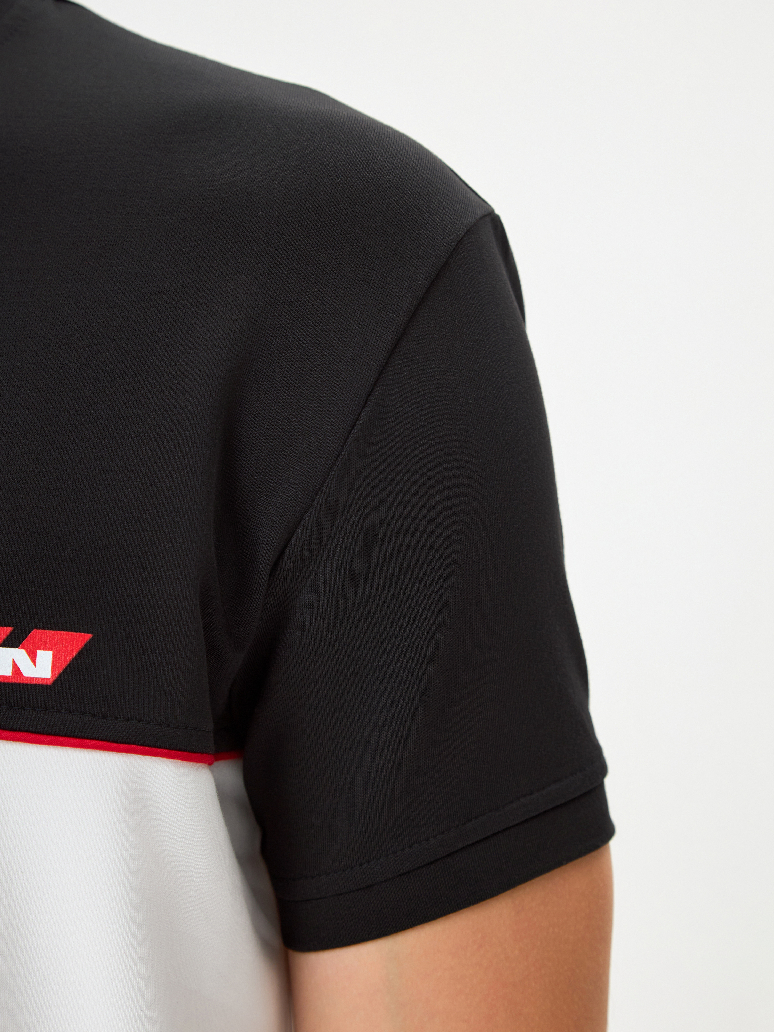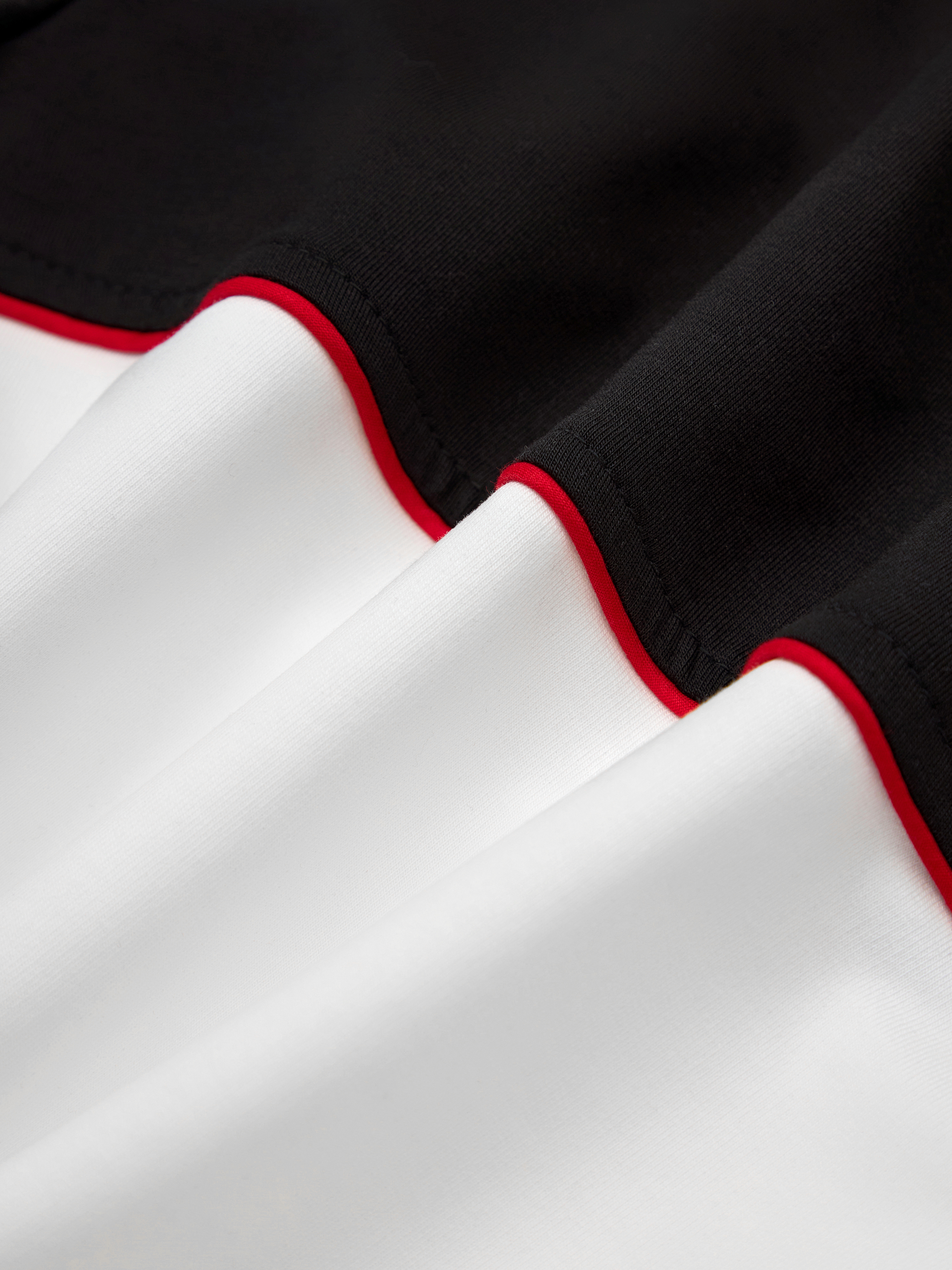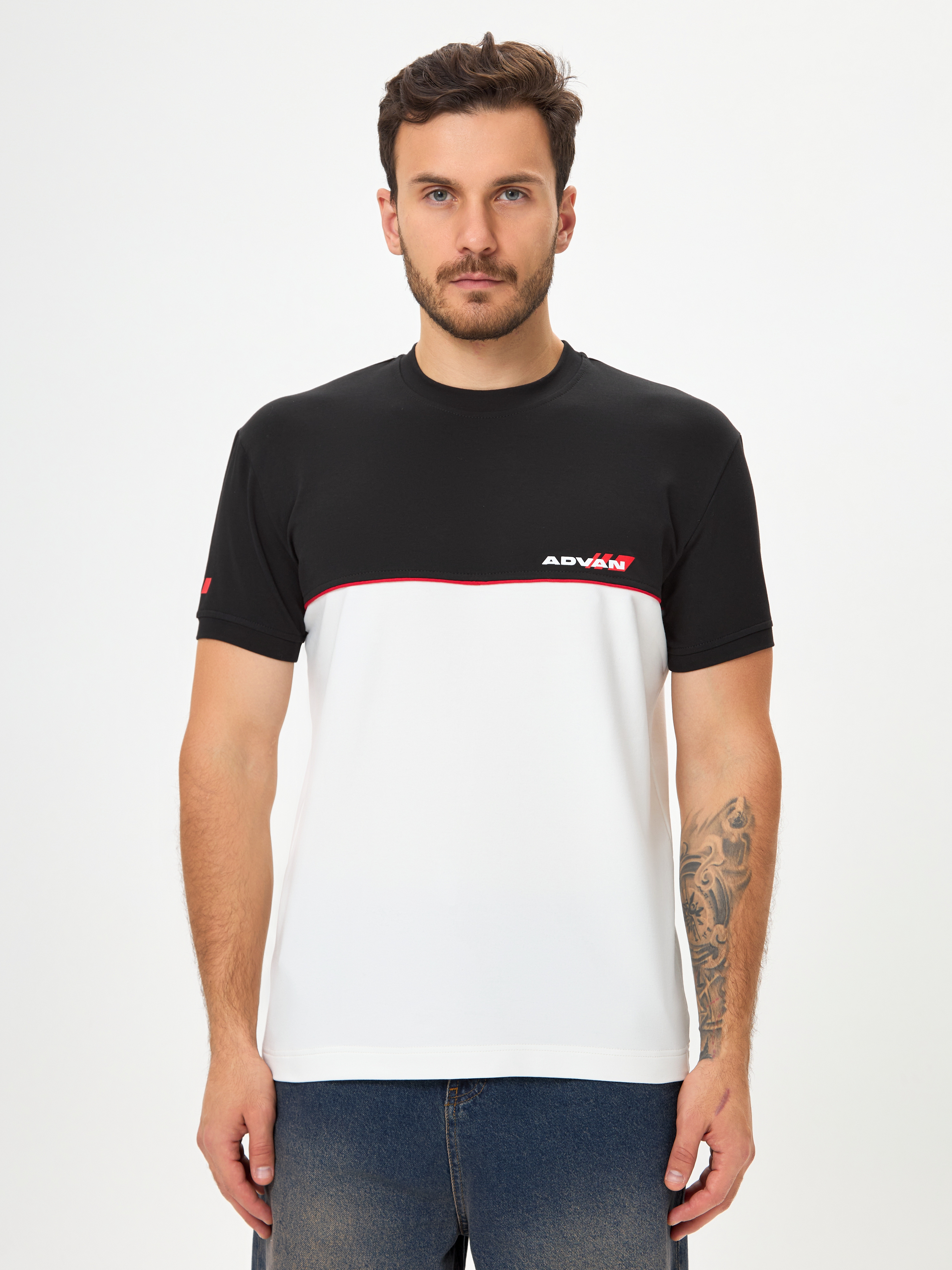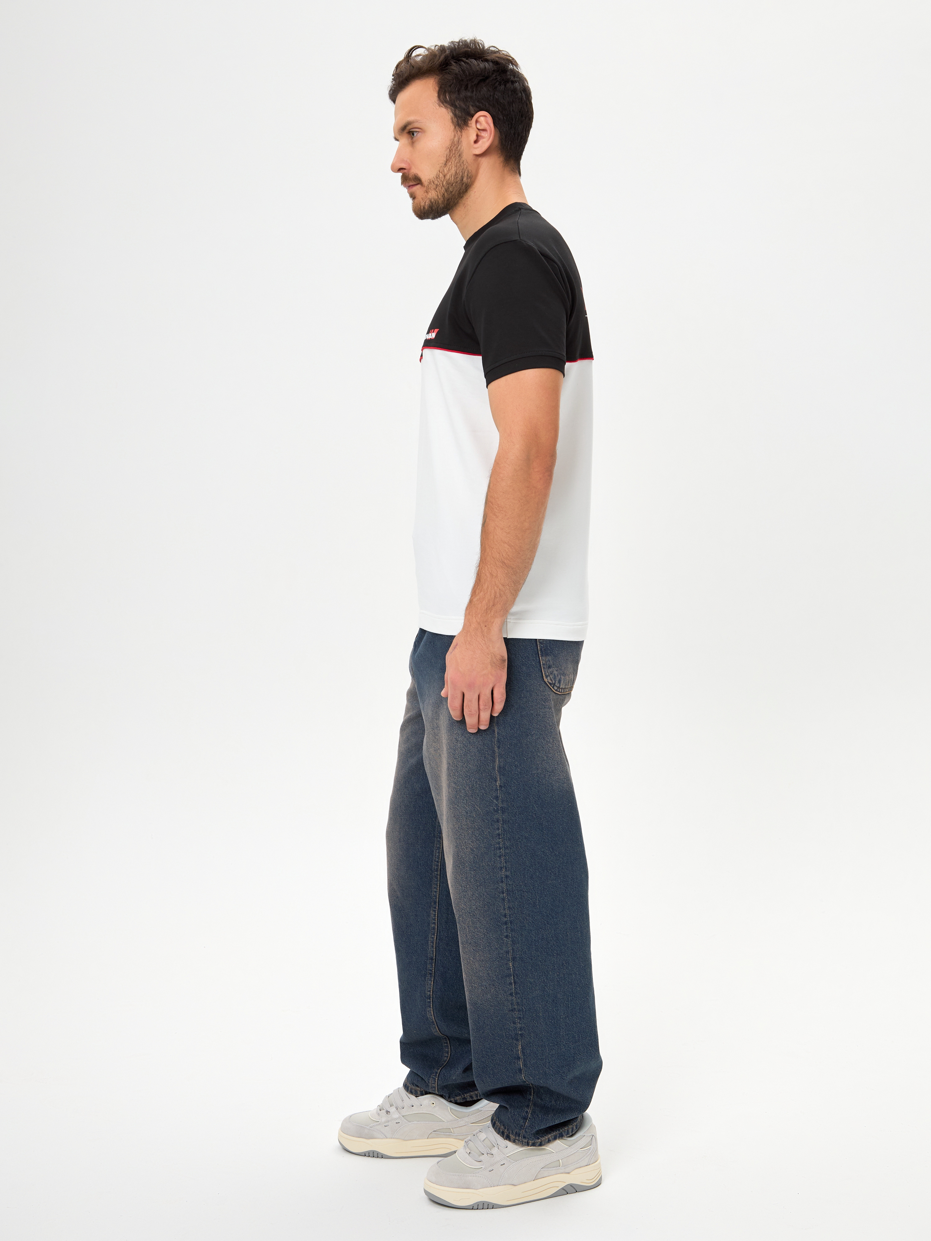Футболка классического фасона свободного кроя с манжетами на рукавах и цветным кантом. Цветовые комбинации делают изделие элегантным и привлекательным.